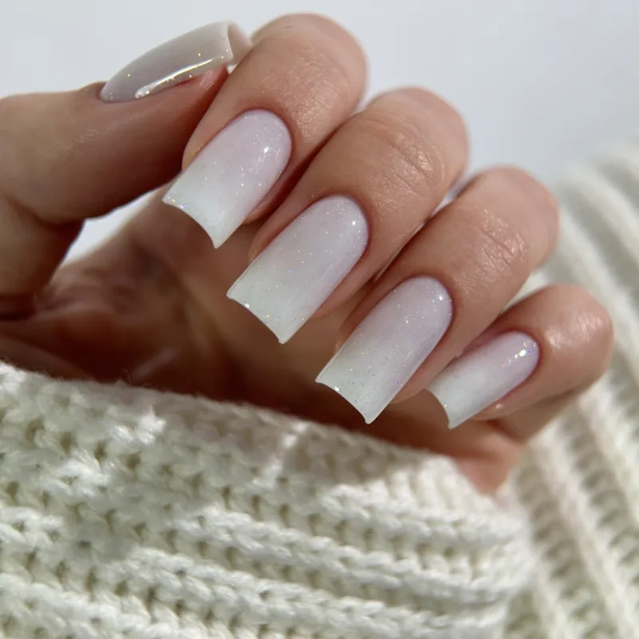 Bianco Lattiginoso con Glitter Argento: Effetto Brina Scintillante
