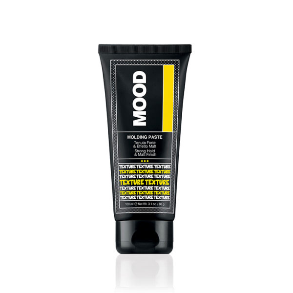 Mood Molding Paste 100ml è la pasta modellante a tenuta forte, effetto Matt, che, attraverso la sua formulazione, è in grado di destrutturare e definire i capelli.